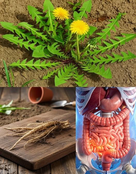 Caminamos sobre ella, la arrancamos de nuestros jardines y la rociamos con herbicidas, considerándola una simple maleza. Sin embargo, esta “maravilla modesta de la naturaleza” que crece prácticamente en todas partes — la humilde diente de león (Taraxacum officinale) — es, de hecho, una potencia nutricional y medicinal que ha sido venerada durante siglos en la herbolaria de todo el mundo. La imagen, que muestra sus hojas, su raíz y la anatomía intestinal, apunta directamente a su uso más poderoso: la desintoxicación integral del sistema digestivo y hepático.