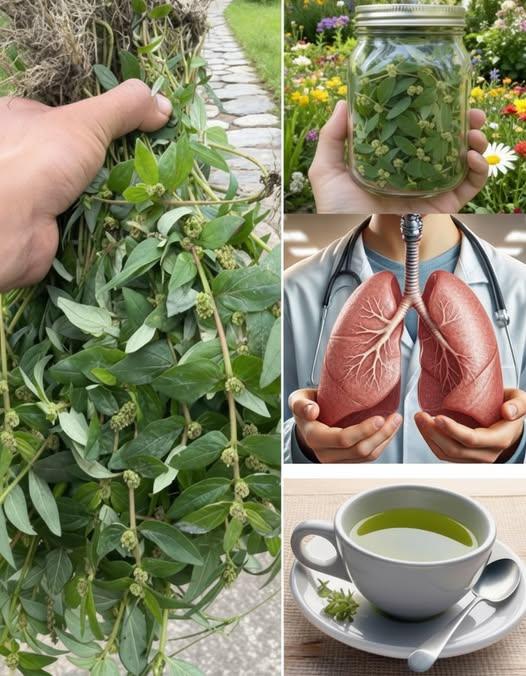 En la prisa por eliminar lo que percibimos como “malas hierbas” de nuestros jardines, a menudo desechamos tesoros botánicos con un historial medicinal milenario. La imagen que muestra una humilde planta rastrera junto a una ilustración de pulmones sanos y un té humeante sugiere una verdad poderosa: la cura para la congestión y el soporte pulmonar podría estar creciendo inadvertidamente en su patio trasero. Esta planta, conocida comúnmente como Yerba de Pollo o Yerba de Serpiente (Euphorbia hirta), es una joya de la medicina tradicional que es venerada por sus notables propiedades antiasmáticas, antiinflamatorias y broncodilatadoras.