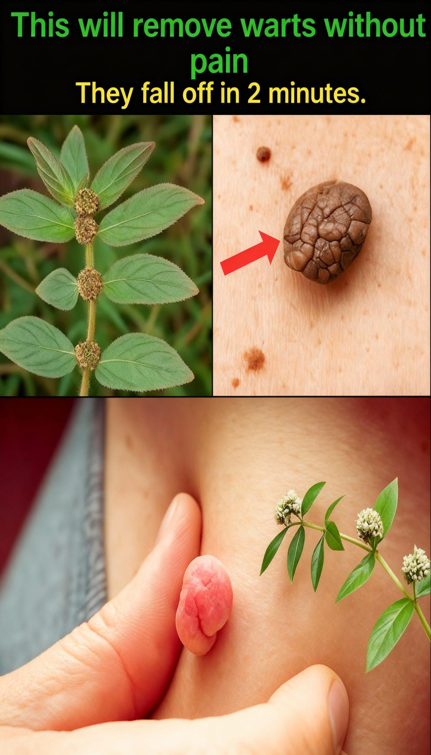 The image is a testament to this hidden miracle: a clear visual of a common plant juxtaposed with the rapid, clean removal of skin growths, promising a solution that works so fast, the growths “fall off in 2 minutes.” This powerful claim is rooted in the concentrated, chemical composition of this plant’s extract, which targets the underlying cause of warts—the Human Papillomavirus (HPV)—while gently desiccating the skin growth itself. Prepare to discover the identity of this secret leaf, the precise mechanism behind its rapid action, and the safe, non-painful protocol for reclaiming clear, smooth skin.