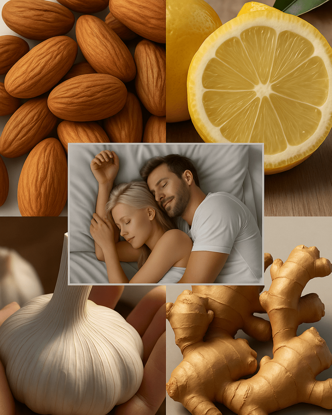 While the image shows almonds, lemon, garlic, and ginger—all excellent for general health—we are focusing on the powerful traditional formula mentioned in the prompt: Bitter Kola, Ginger, and Lime. This combination is where the true, transformative magic lies.