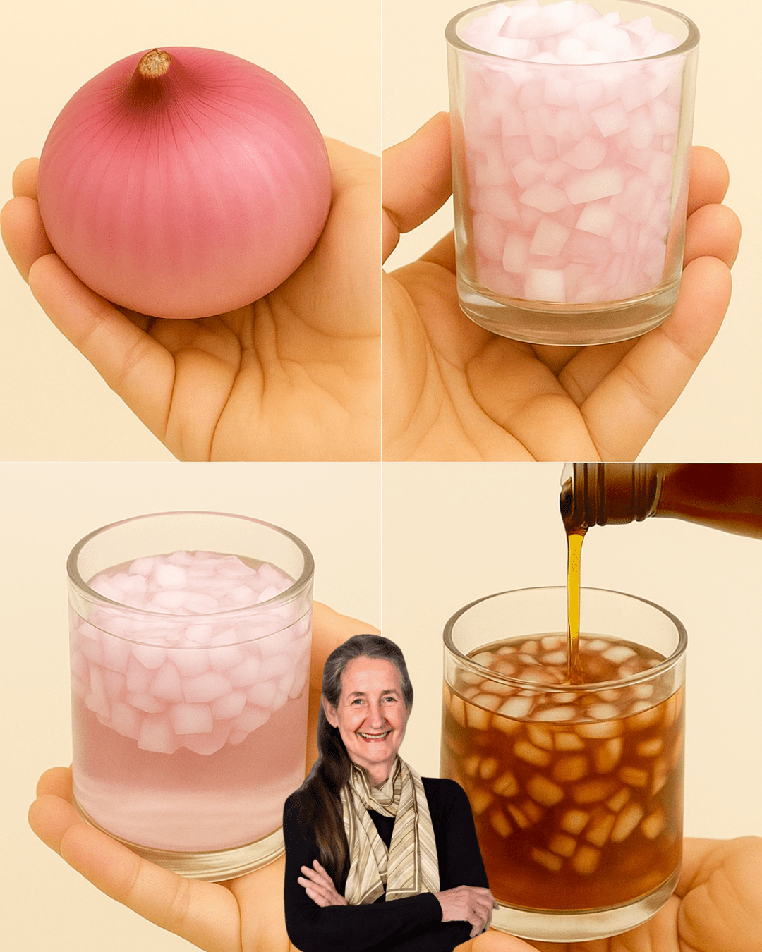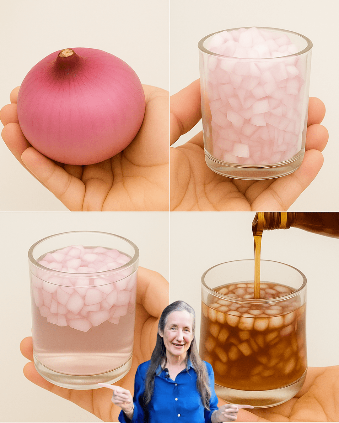 🍯 3-Minute Midnight Jar Ritual Step 1 → Grab 1 purple onion + 200 g raw honey. Step 2 → Dice onion into 5 mm cubes (no tears—chill first). Step 3 → Pack tight in 300 ml glass jar. Step 4 → Pour honey till cubes swim. Step 5 → Seal, flip twice daily. Ready in 12 hours.