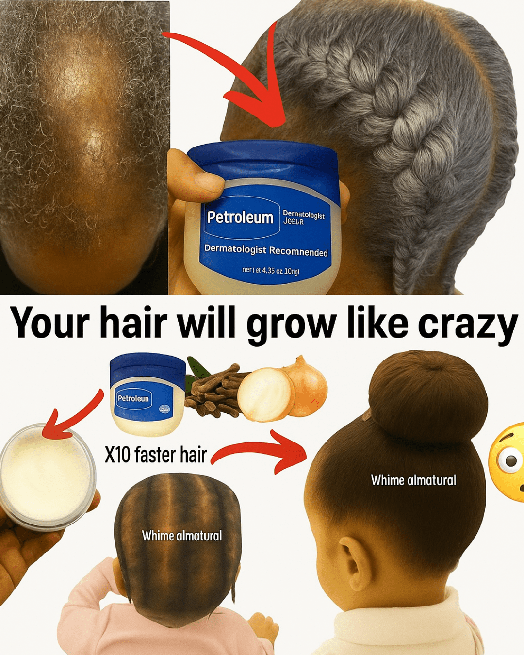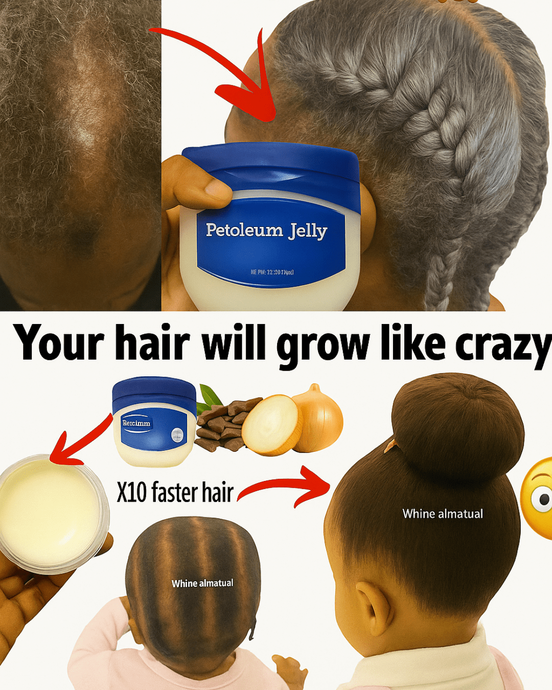 Petroleum jelly (Vaseline) acts as the foundation for hair retention, ensuring the growth achieved is not lost to breakage.