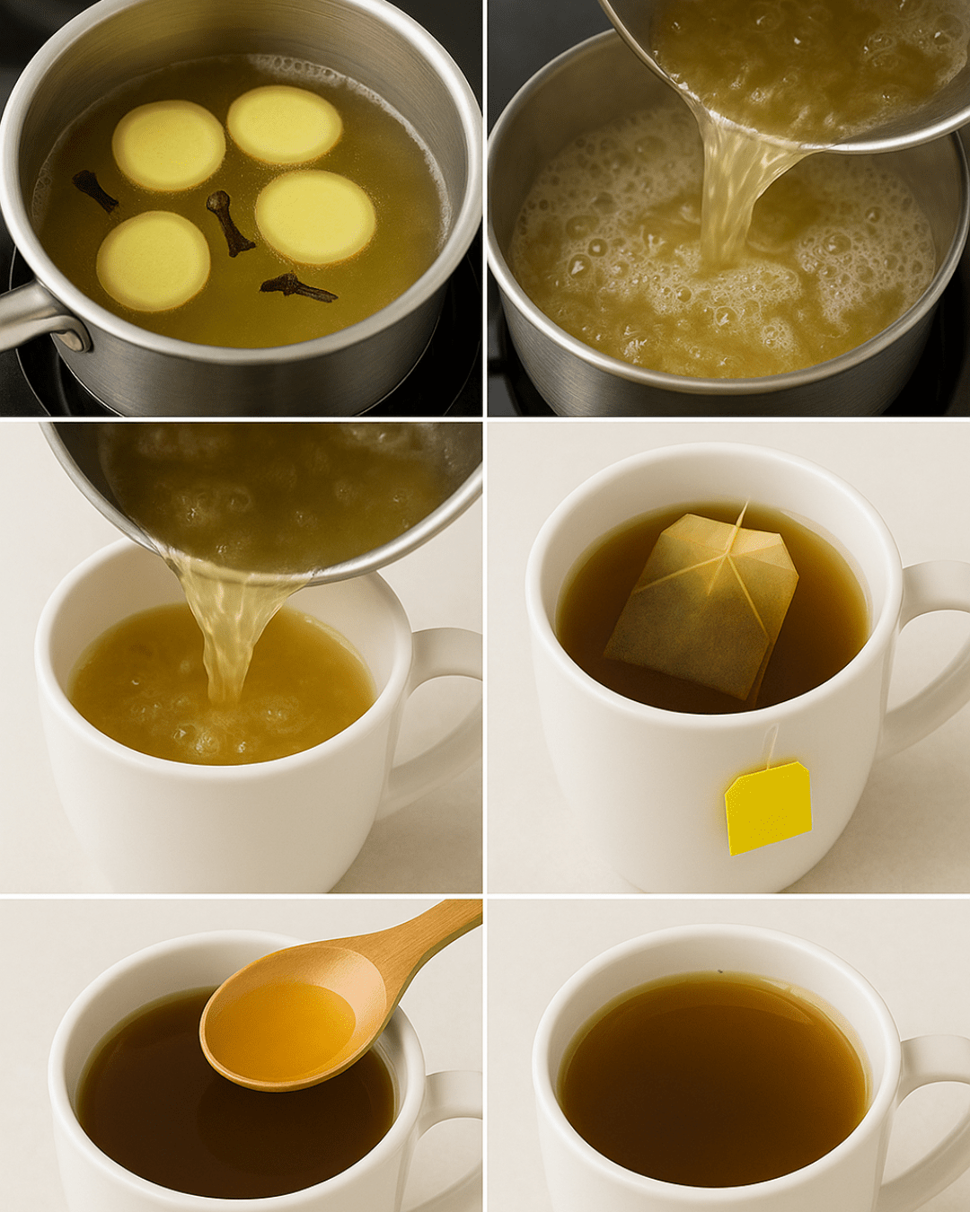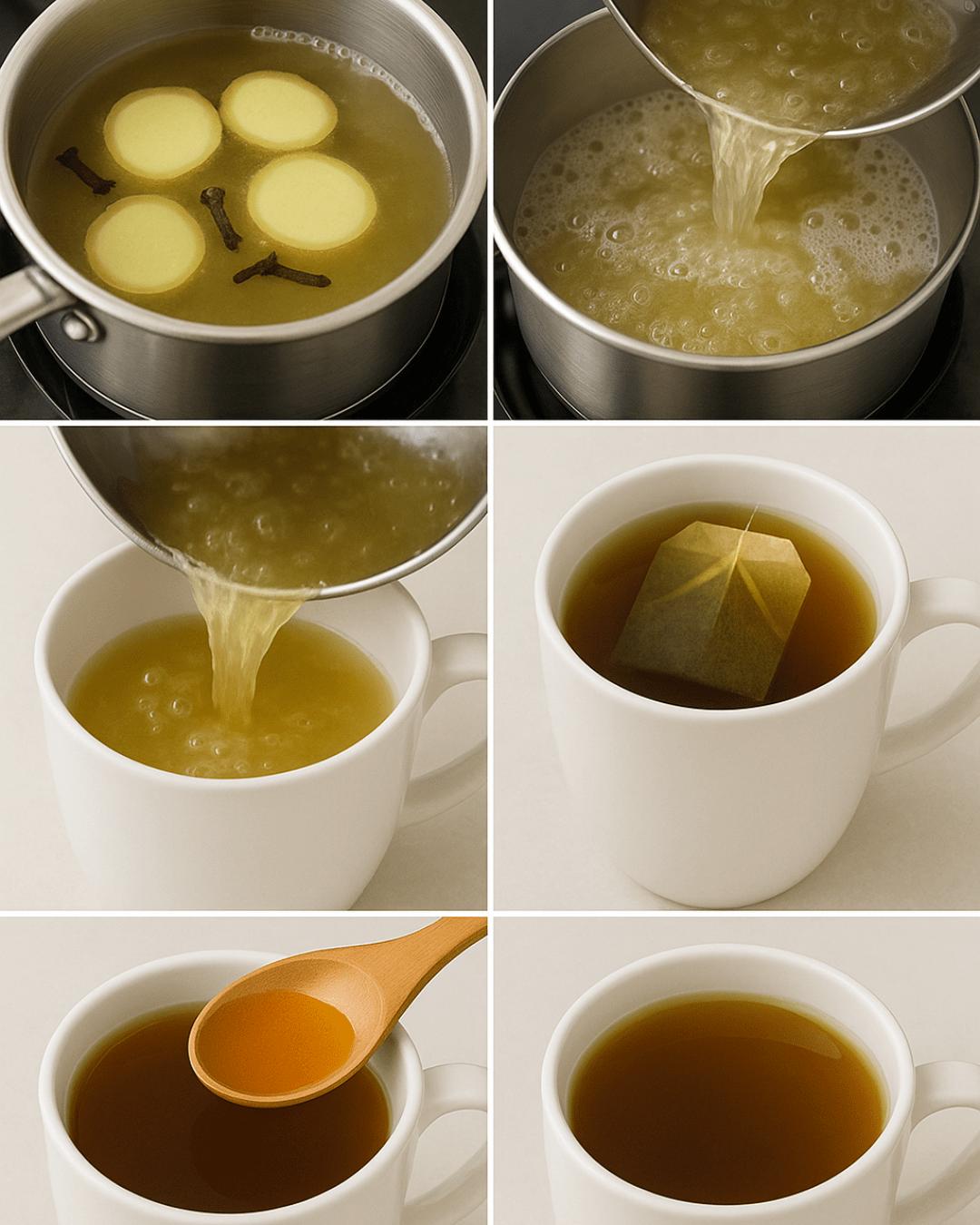 - Simmer the Spices: Combine the water, sliced ginger, and whole cloves in a saucepan. Bring the mixture to a low boil, then immediately reduce the heat to a simmer.