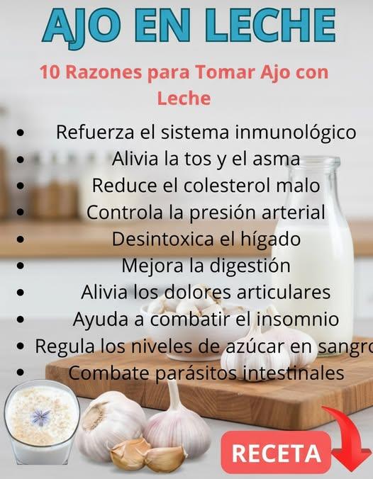 8️⃣ Mejora la Digestión: El ajo actúa como un prebiótico, fomentando el crecimiento de bacterias beneficiosas en el intestino. La leche, al ser un amortiguador, permite que el ajo actúe como un suave estimulante digestivo sin causar la irritación que el ajo crudo a menudo provoca.