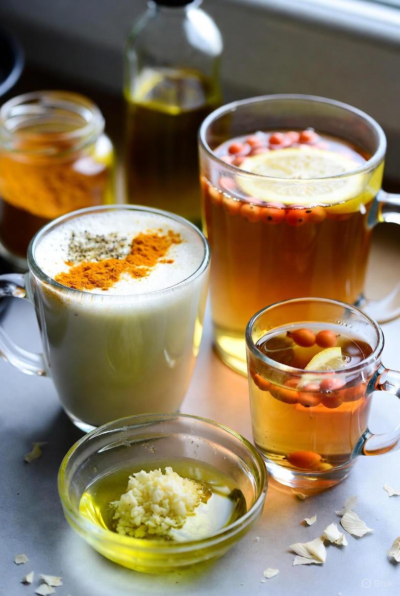 - Warm “golden milk” made with milk (or plant-based alternative), turmeric, and black pepper