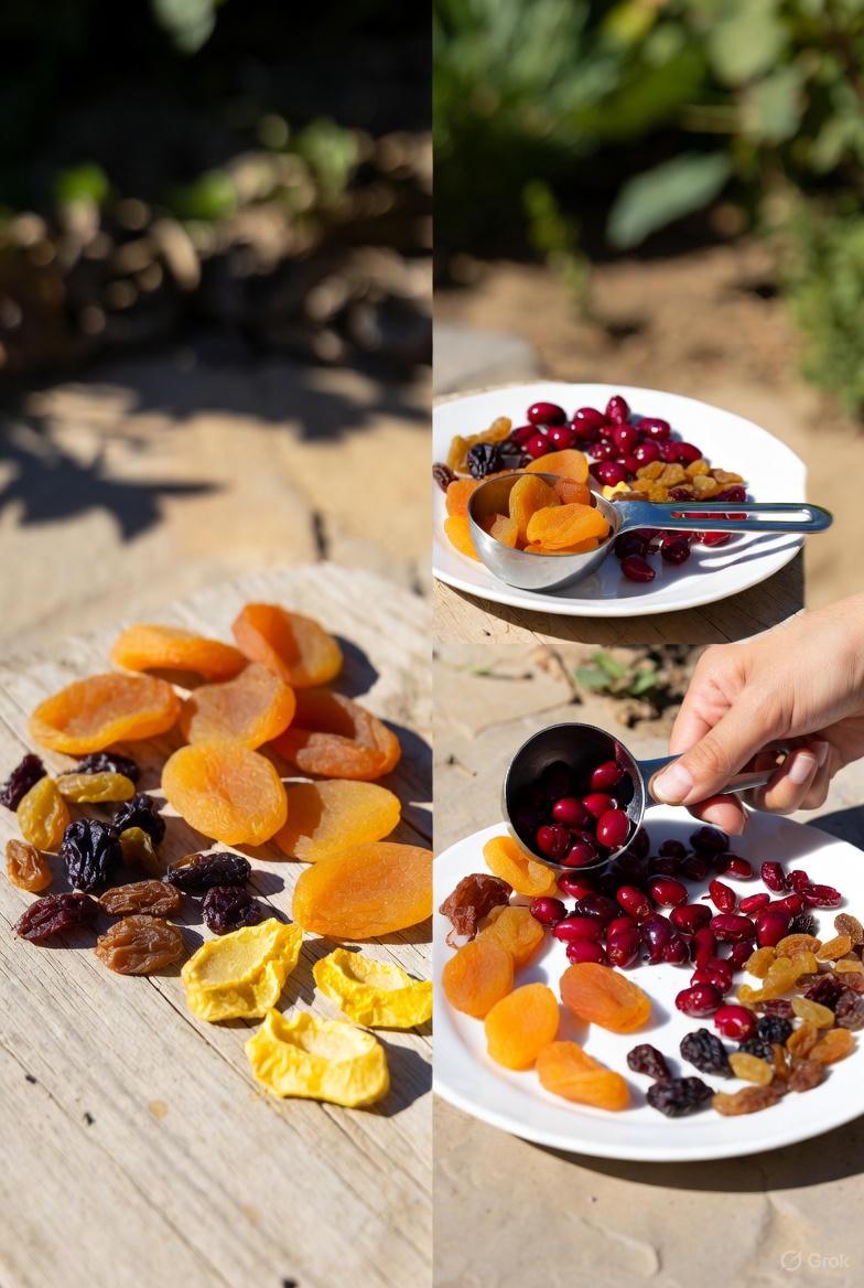 Start with small portions: 4–6 apricots, a handful of raisins, or 1–2 tablespoons of cranberries. Avoid overeating to prevent digestive upset.