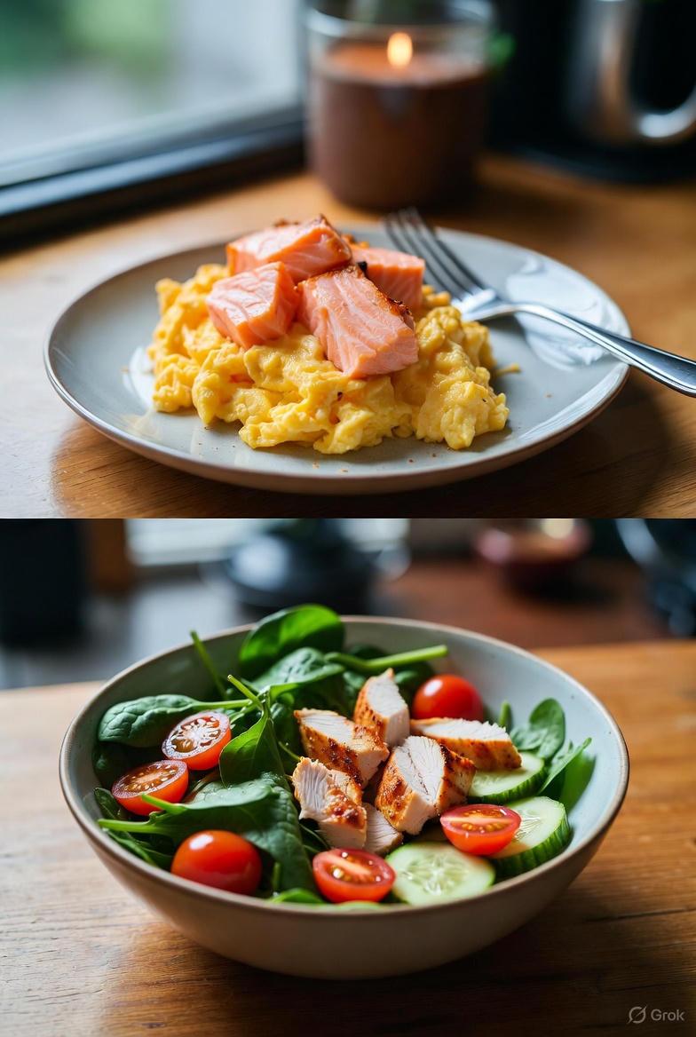 2. Add one vitamin-rich food to each meal—eggs for breakfast (D and B12), spinach salad at lunch (E), salmon for dinner (D).
