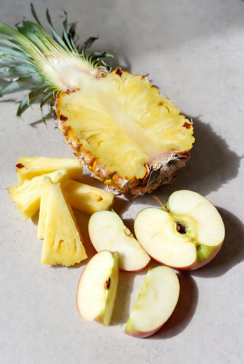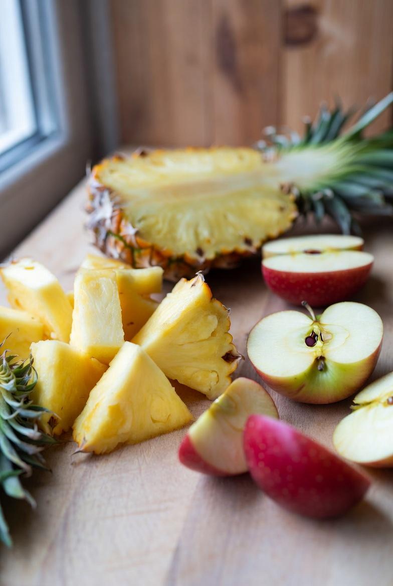 3. Prep small portions in advance—like slicing apples or cubing pineapple.