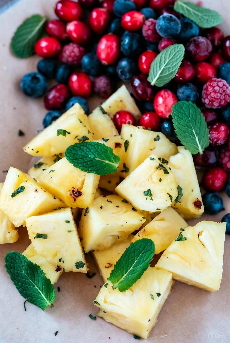 | Pineapple | Bromelain, Vitamin C, Fiber | Hydration and inflammation support | 1 cup fresh chunks |