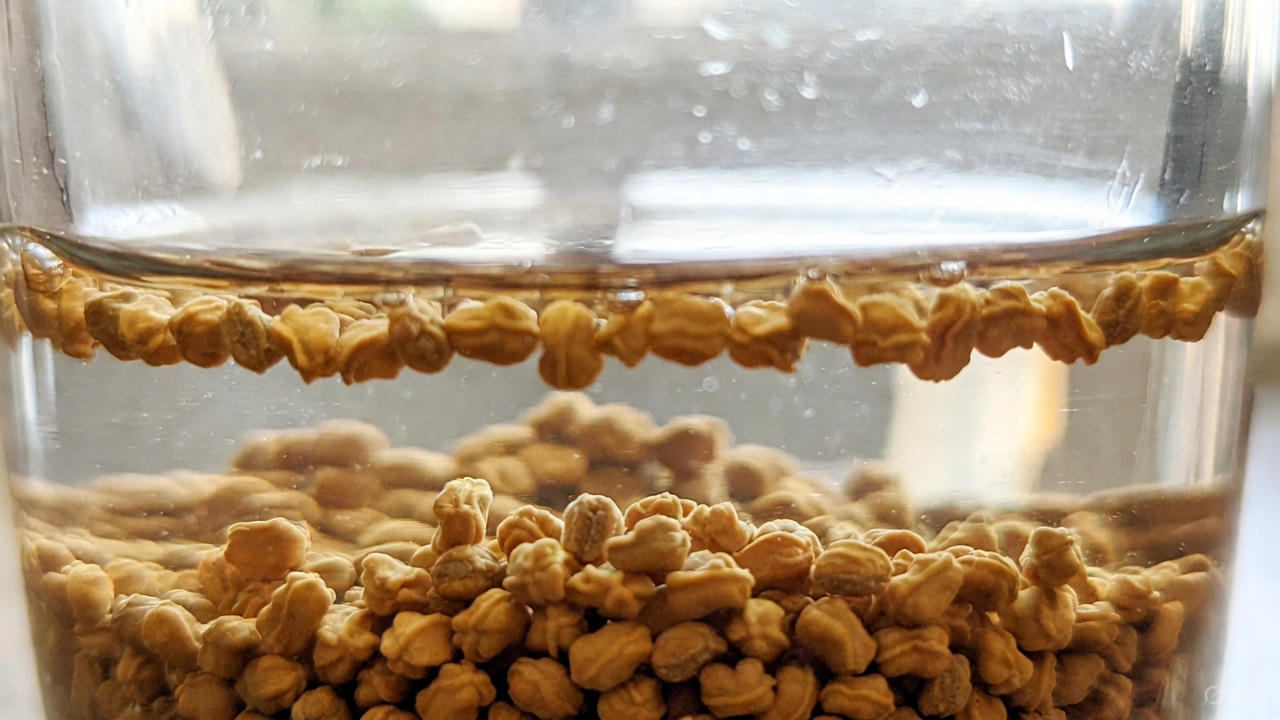 • Add 1 teaspoon of whole fenugreek seeds to 250ml of room-temperature water.