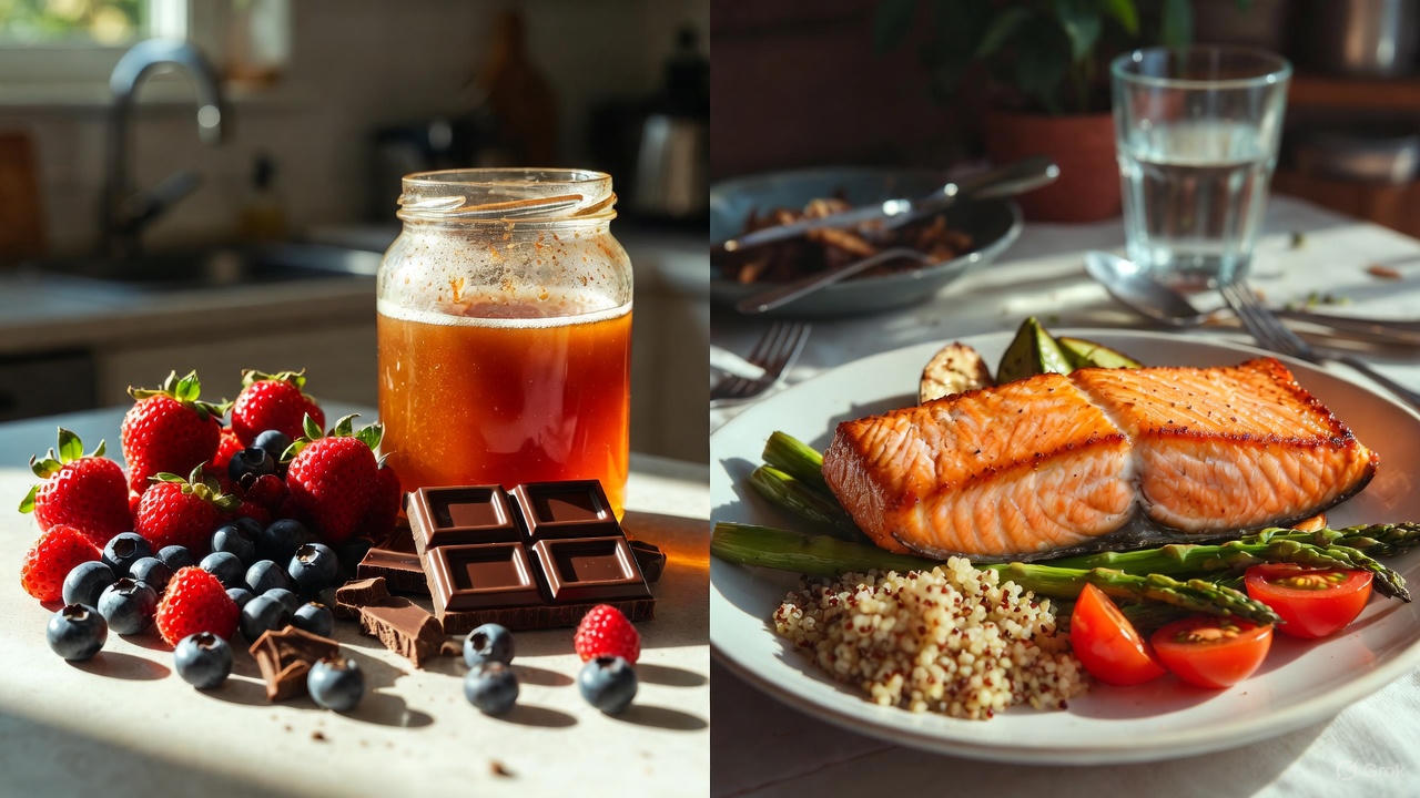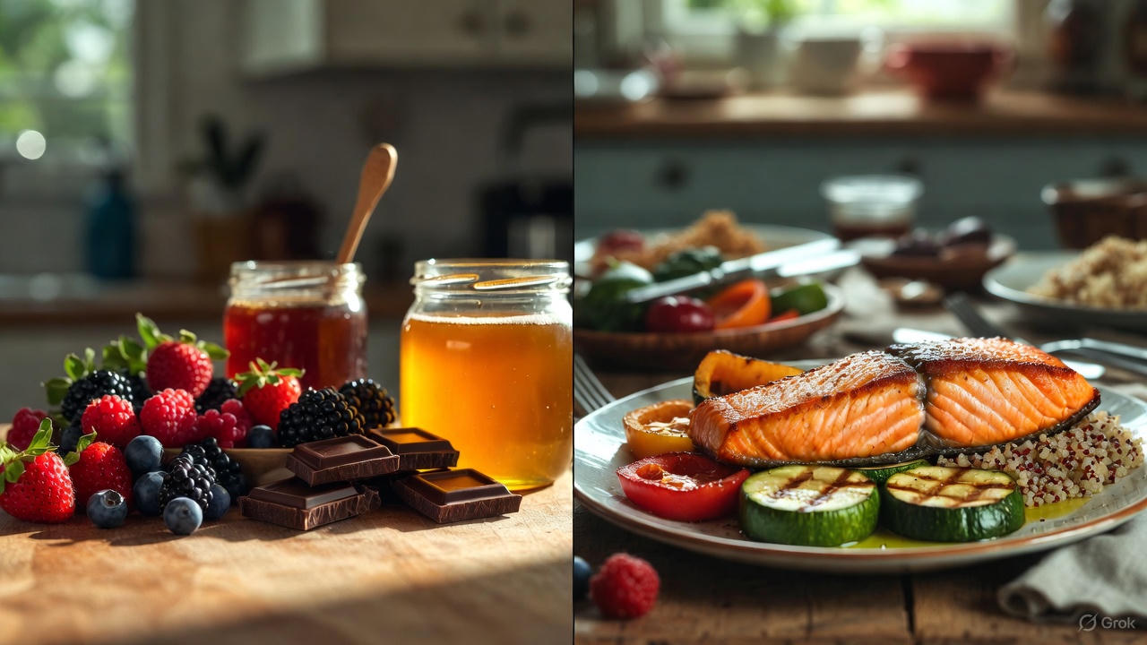 Added sugars (soda, candy, pastries)Berries, dark chocolate, raw honey