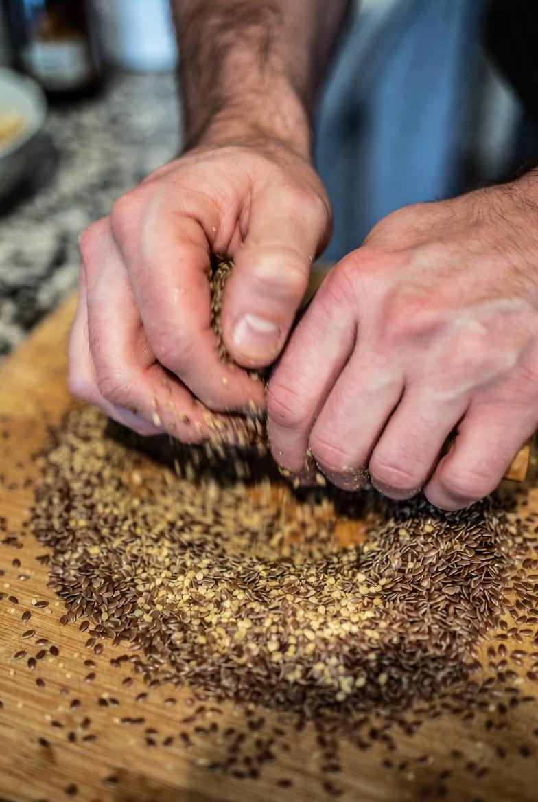 - Measure one tablespoon of whole flaxseeds.