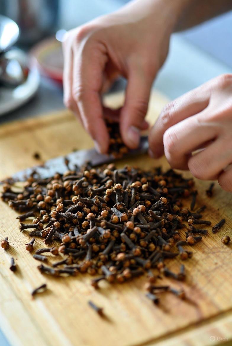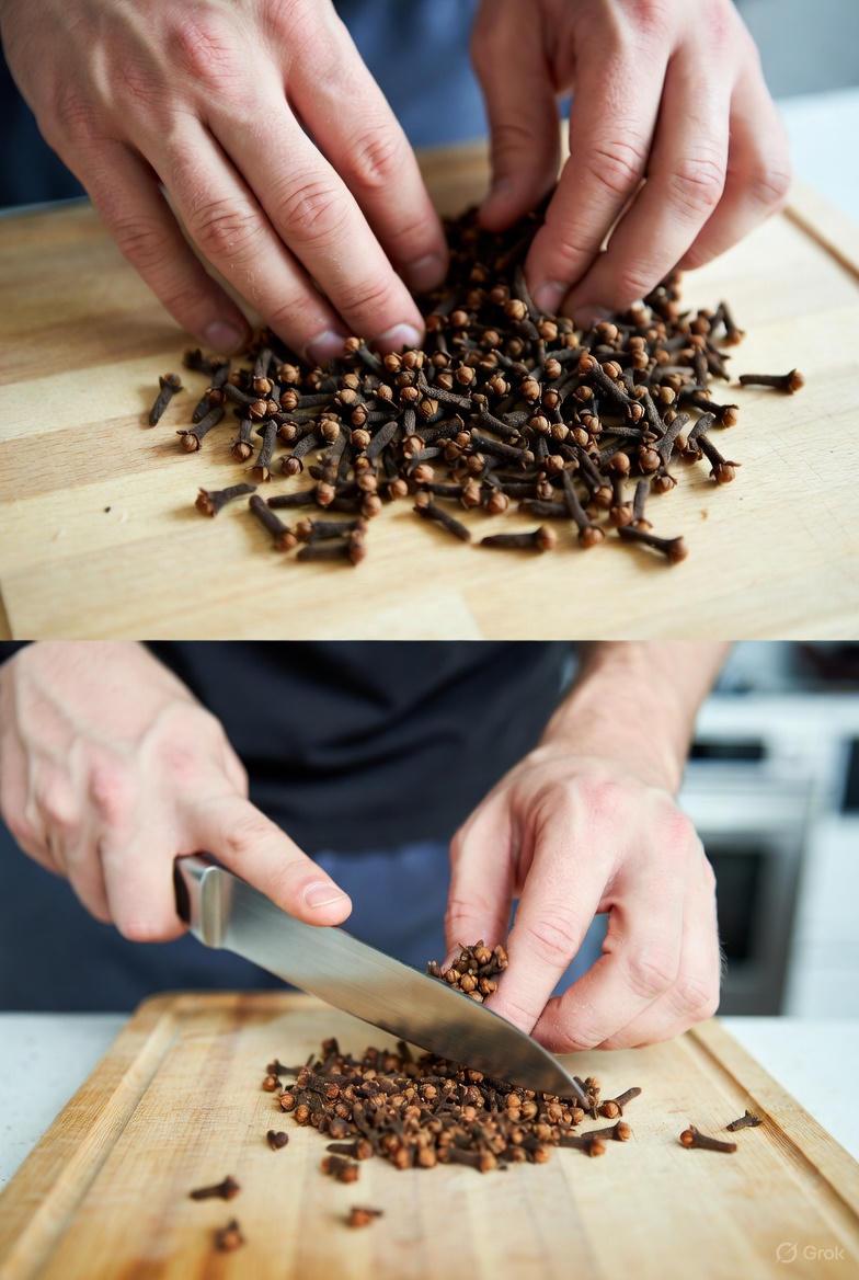 - Lightly crush 6–8 whole cloves with the back of a knife