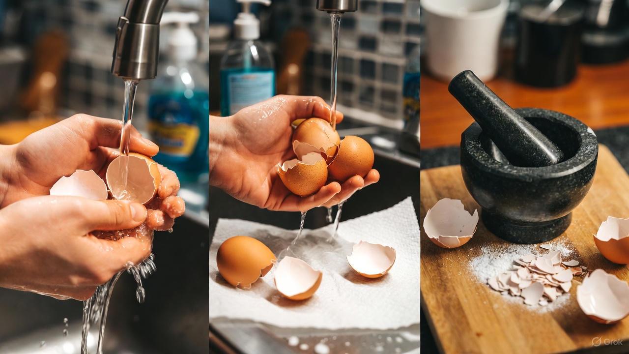 1. Collect and clean: Save clean eggshells from meals. Rinse thoroughly under running water to remove any remaining egg white or membrane.