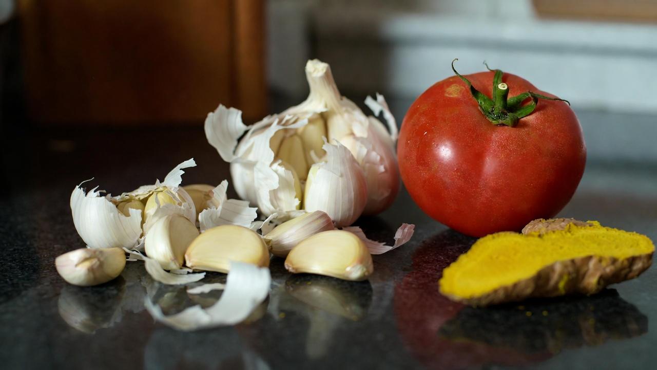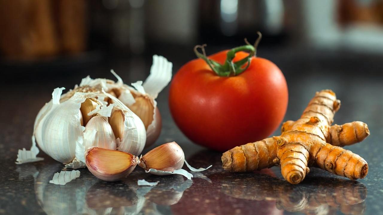 This drink centers on three accessible items: garlic, tomato, and turmeric. Each brings unique bioactive elements that research links to cellular support and reduced inflammation.
