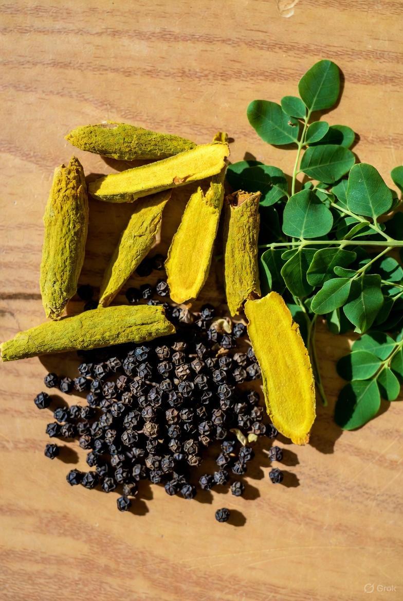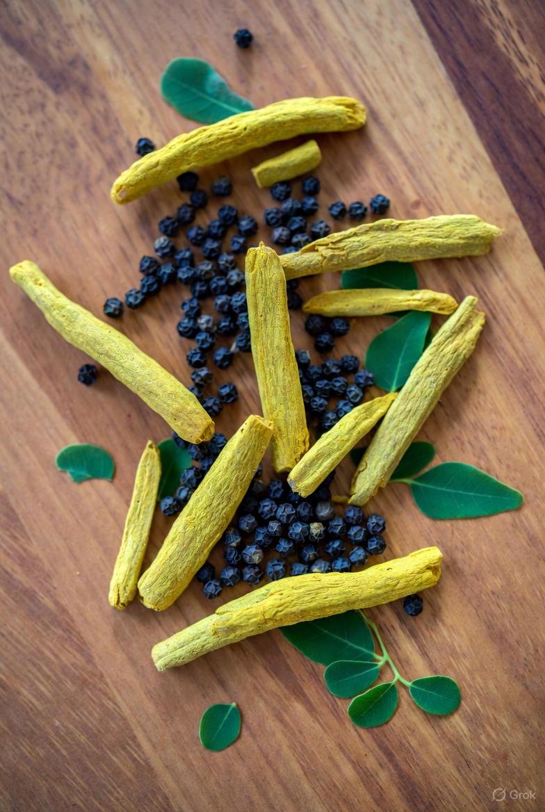 - Black pepper: Contains piperine, which research suggests can significantly improve the absorption of curcumin—by up to 2000% in some studies.