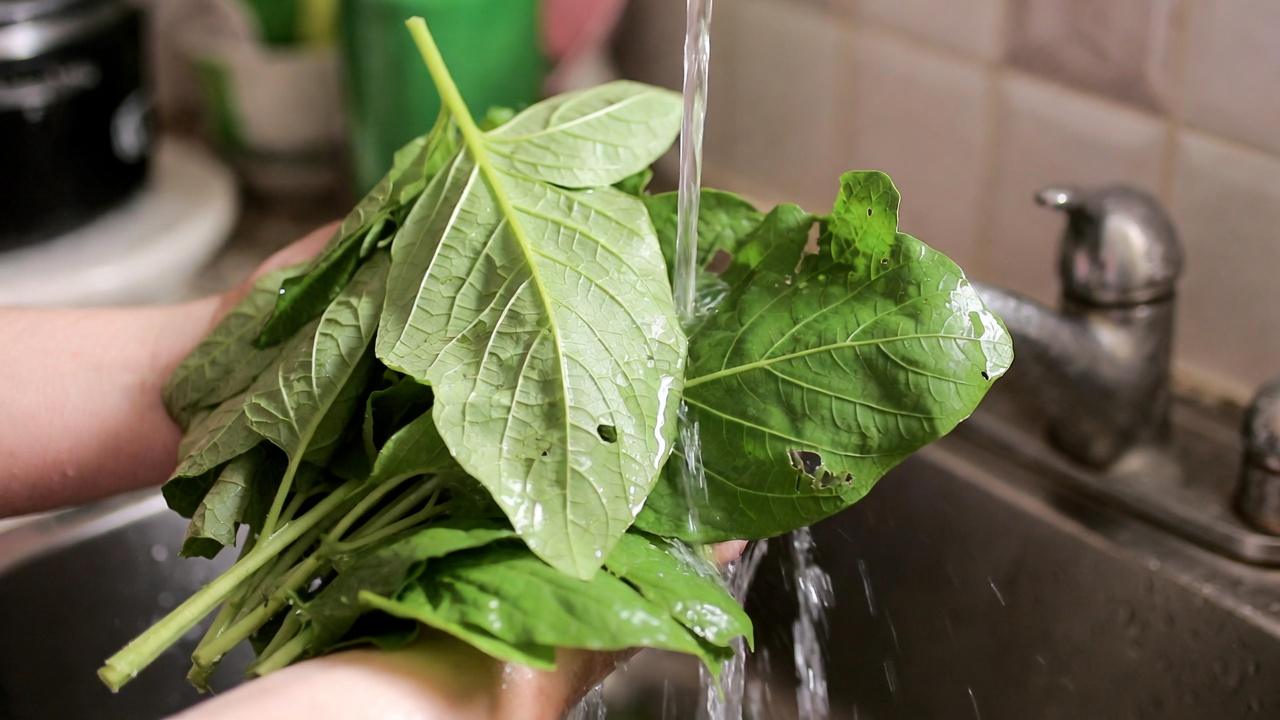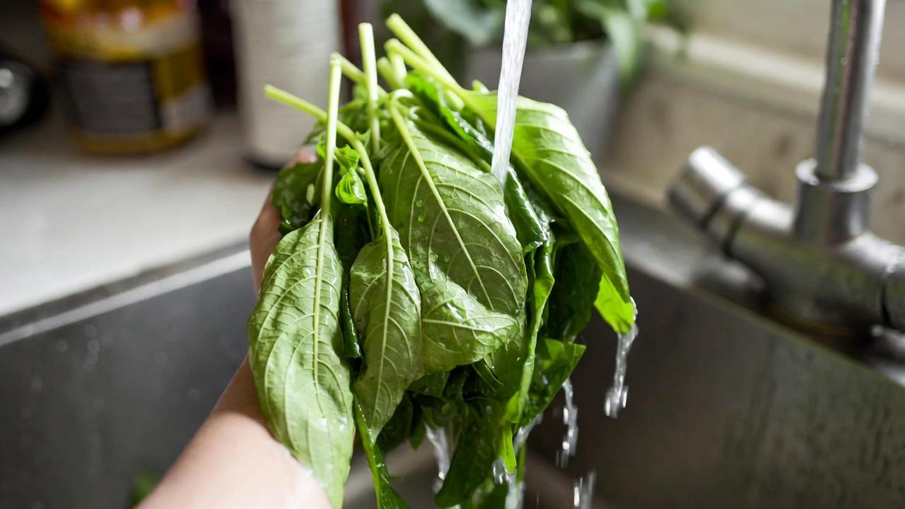 - Wash the leaves and stems thoroughly under running water to remove any dirt.