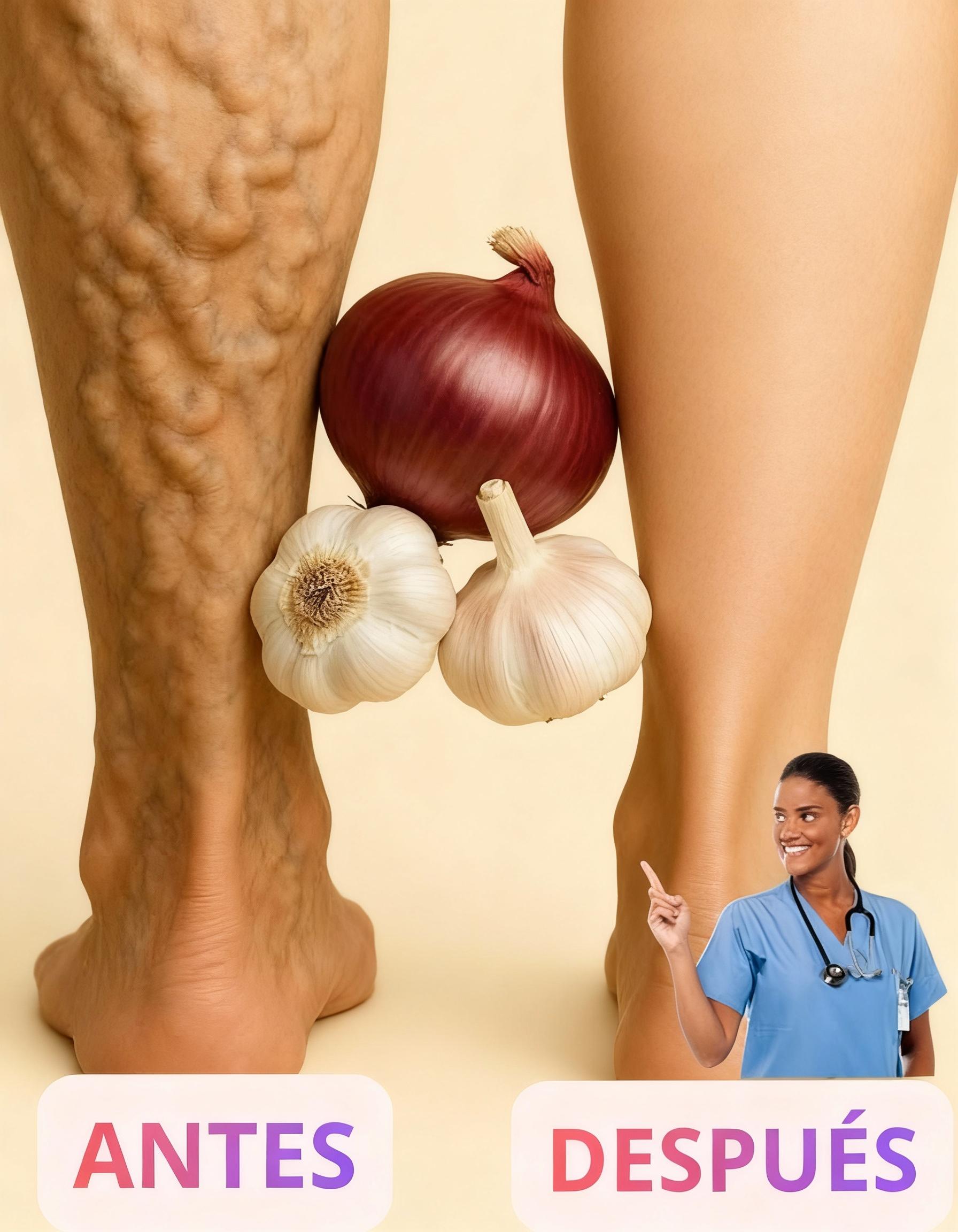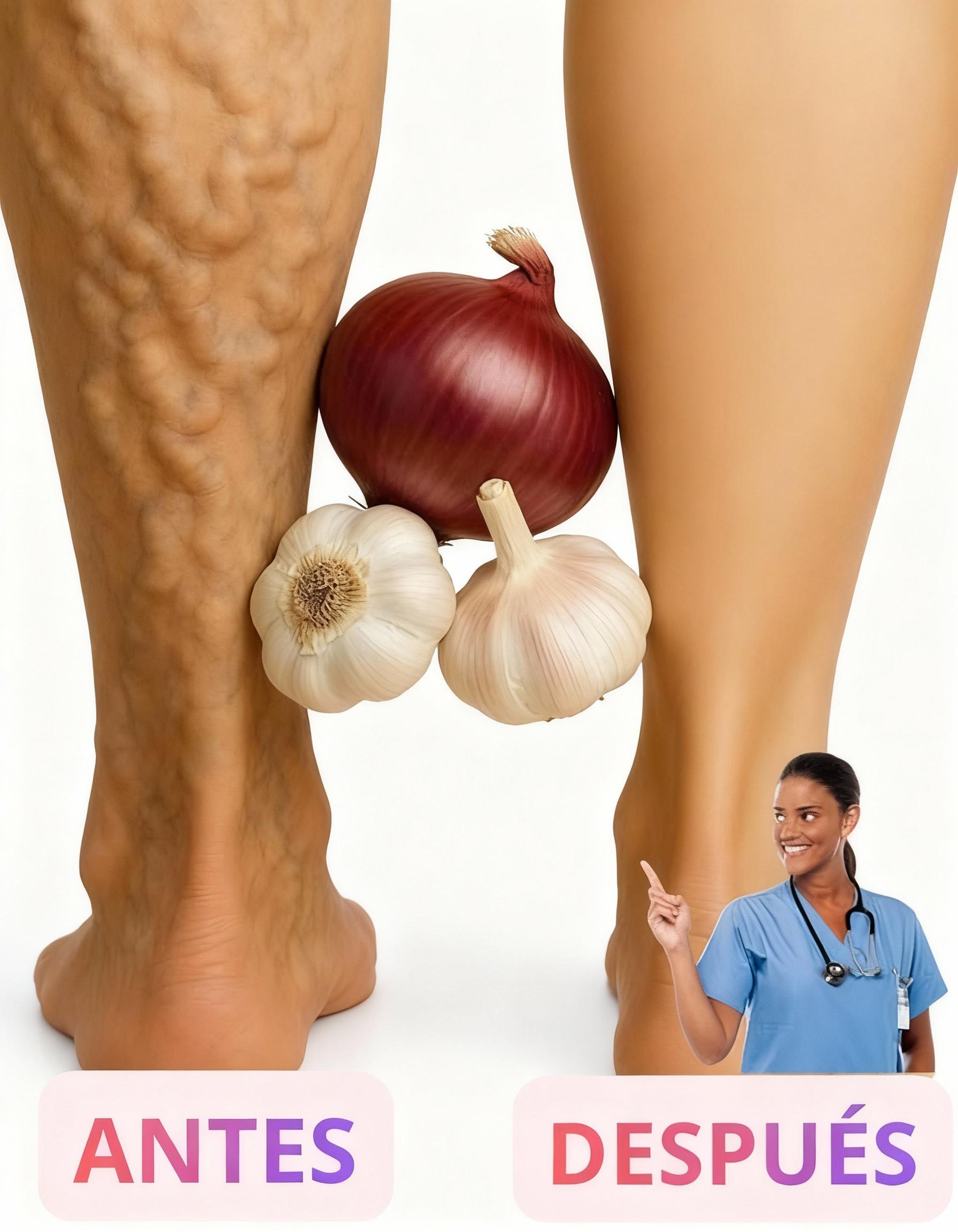 Esa sensación de pesadez y el dolor sordo en tus piernas al final del día, junto con la incomodidad estética de las venas varicosas, te causan frustración y te hacen buscar desesperadamente una solución. Has visto imágenes asombrosas que prometen borrar las várices “como por arte de magia” usando solo ajo y cebolla, y te preguntas si hay alguna verdad científica en esos remedios caseros. Es agotador depender solo de las medias de compresión y quieres un método natural, accesible, y que realmente apoye la salud de tus venas desde dentro y fuera. Pero, ¿y si te dijéramos que los compuestos azufrados del ajo y los flavonoides de la cebolla son potentes vasodilatadores y antiinflamatorios que, usados correctamente, pueden complementar tu tratamiento y aliviar significativamente la carga sobre tus venas? Sigue leyendo, porque la ciencia detrás de este dúo de cocina es la clave para unas piernas más ligeras.