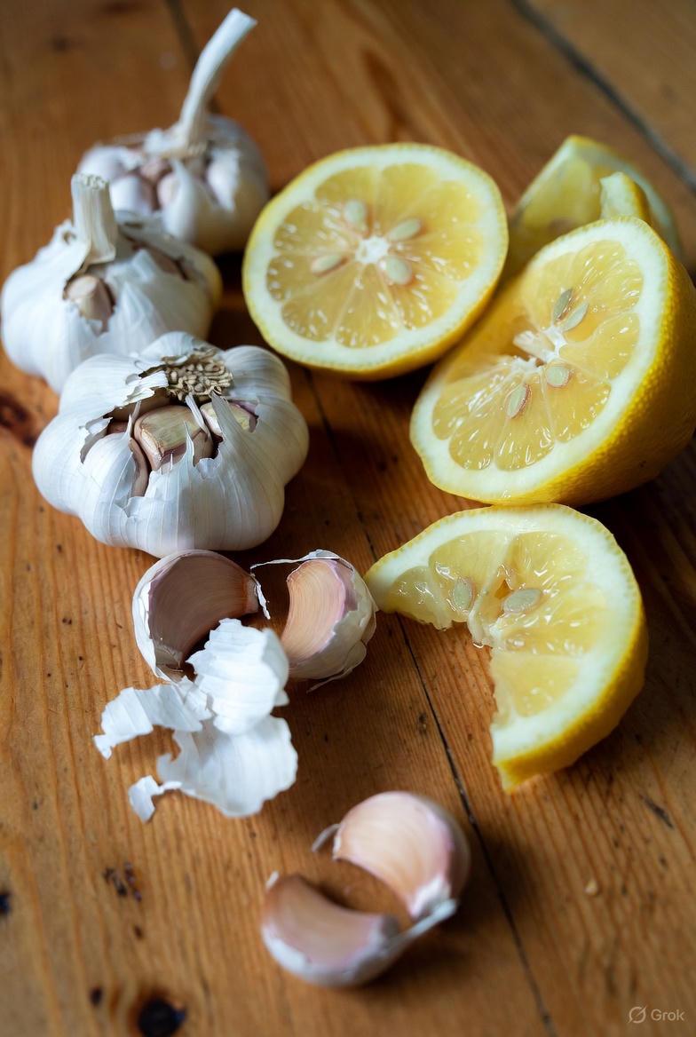 Food amounts vary, but 1–2 cloves of garlic and juice from 1 lemon are common starting points. Listen to your body and consult a professional.