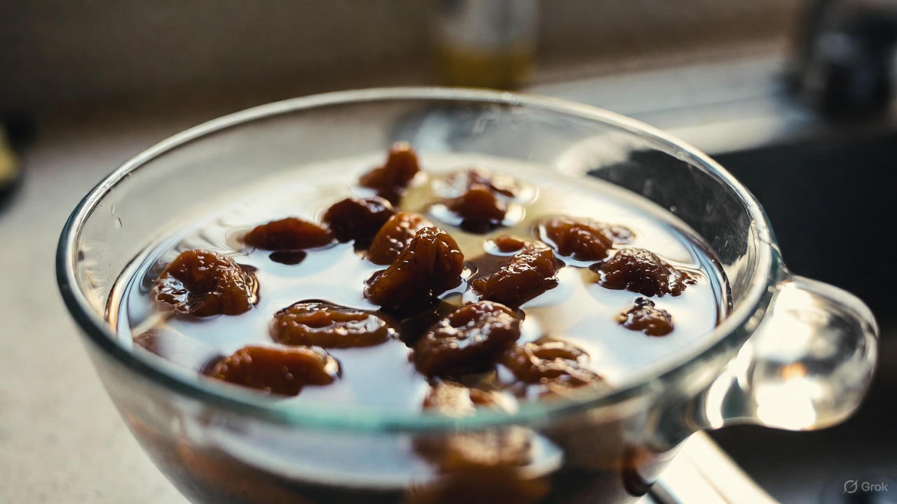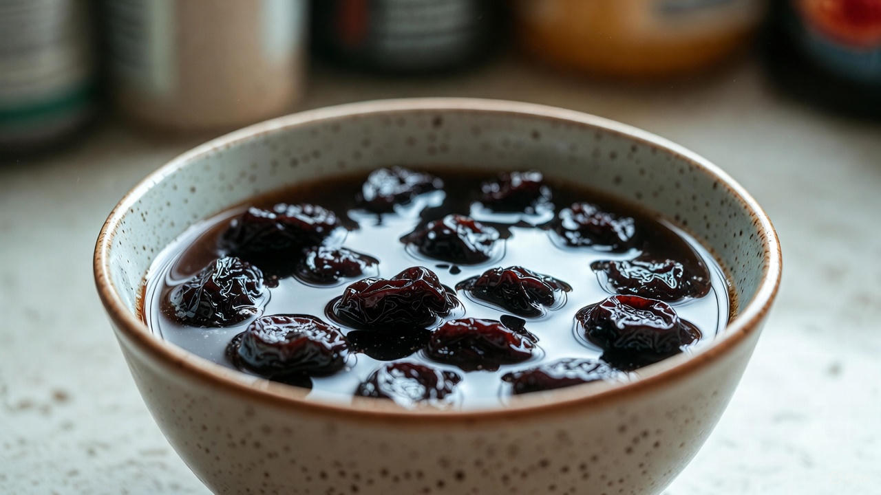 - Prepare the night before: Place 3-4 organic prunes in a cup of warm (not boiling) water. Let them soak overnight to soften and release their natural compounds.