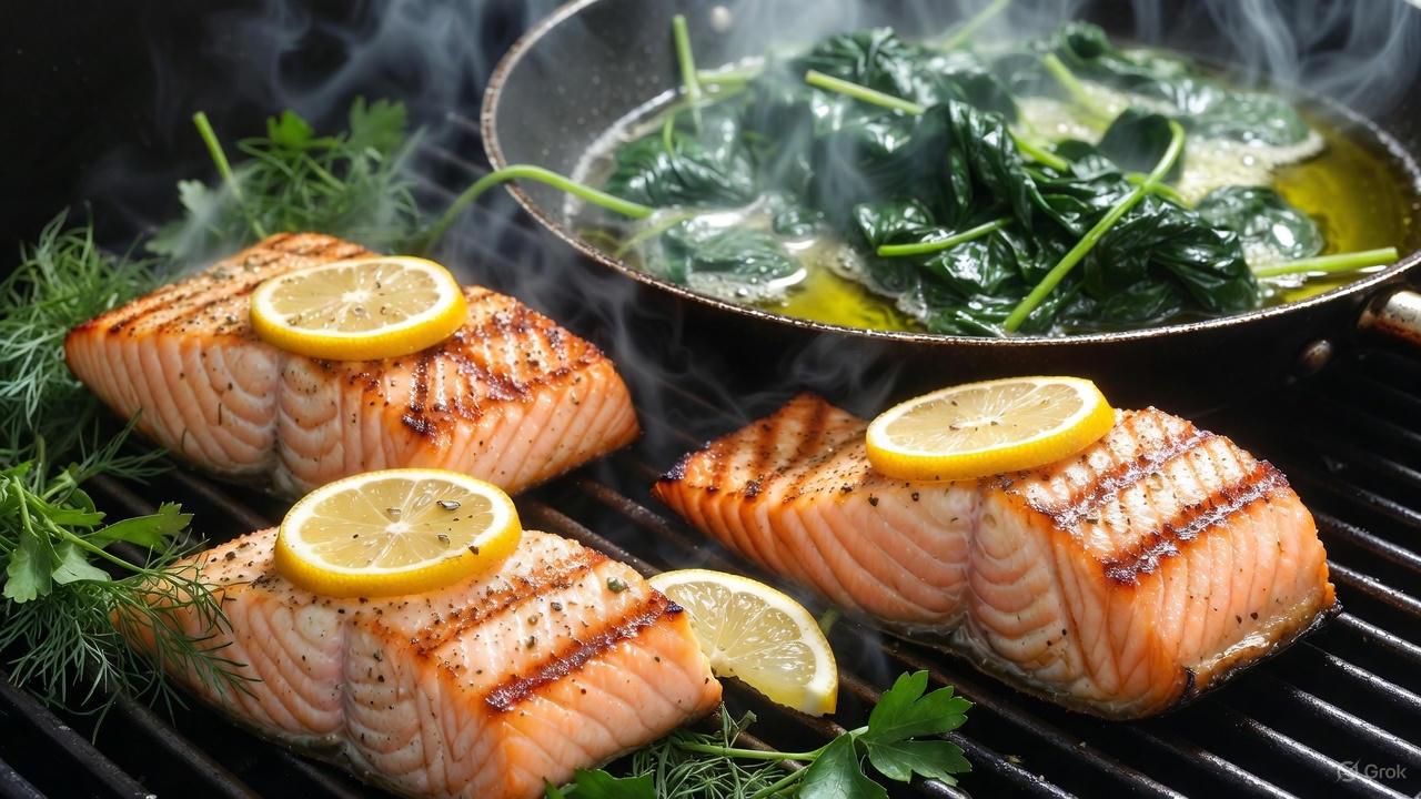 - Season salmon lightly and bake or grill at 400°F for 1215 minutes until cooked through.