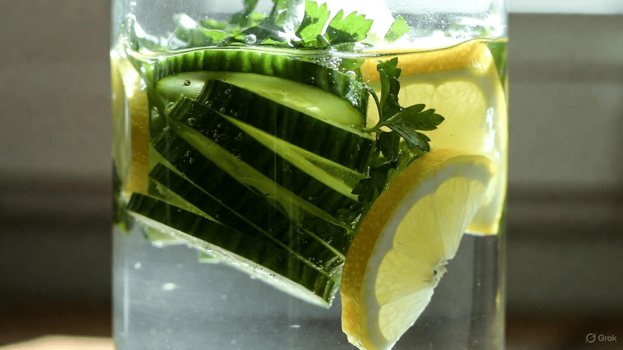 Cucumber-Lemon-Parsley WaterHigh water content + mild diureticEnhances hydration and gentle flushingSlice cucumber and lemon, add parsley; infuse 10+ minutes or overnight
