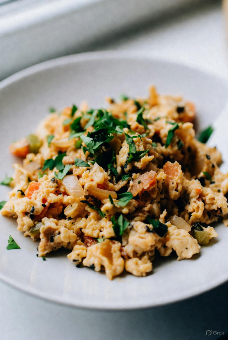 Breakfast Idea 1: Veggie-Packed Scrambled Eggs with Herbs