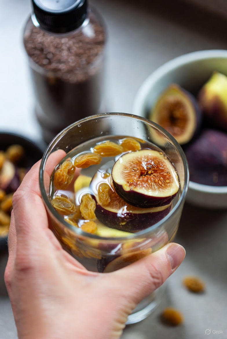 - Soak the Fruits: In the morning or afternoon, place 4-5 raisins or 2 figs in half a cup of room-temperature water. Let them sit for 6-8 hours. This rehydrates them, making nutrients more accessible.