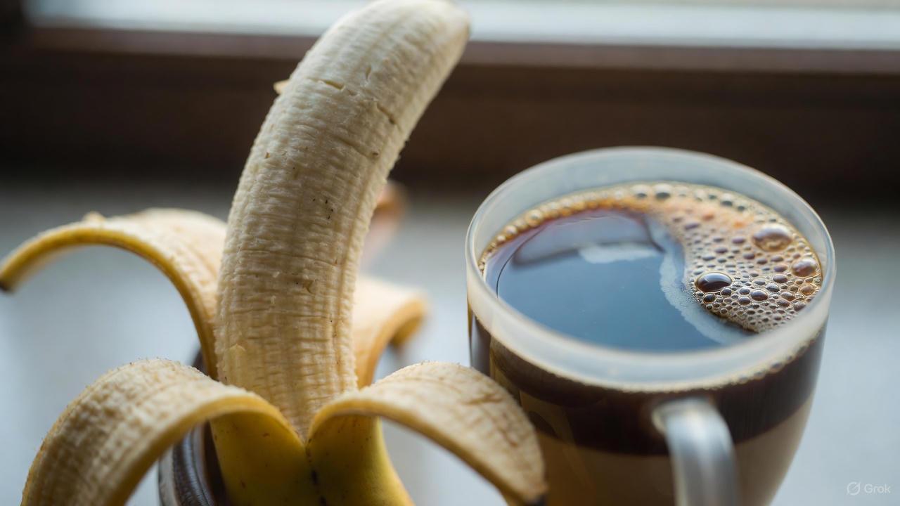 Potassium in bananas supports normal muscle and nerve function, which ties into feeling energized. Moderate coffee intake is linked to better daily performance in research.