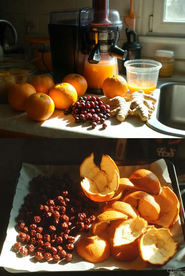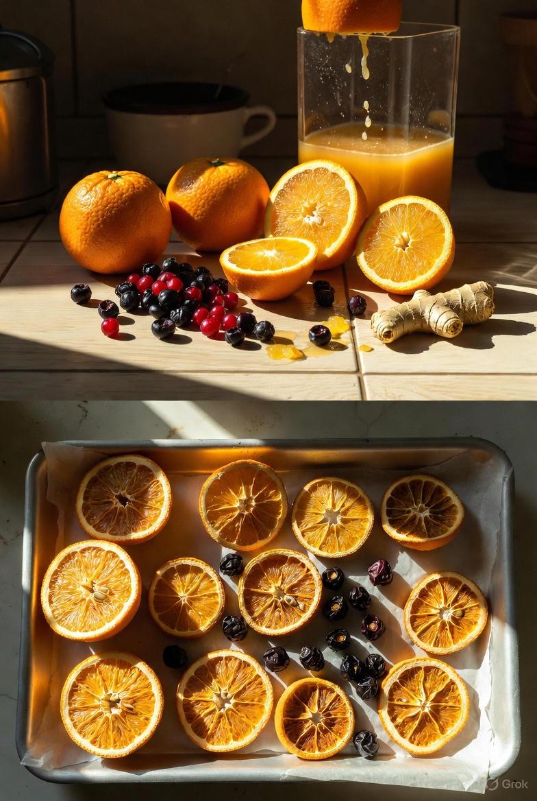 1. Gather Ingredients: You’ll need 4-5 fresh oranges, a handful of berries (for added antioxidants), and optional ginger for a zing.