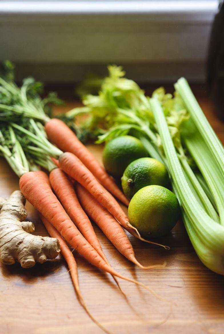 - Run everything through a juicer, starting with carrots and celery, then ginger.