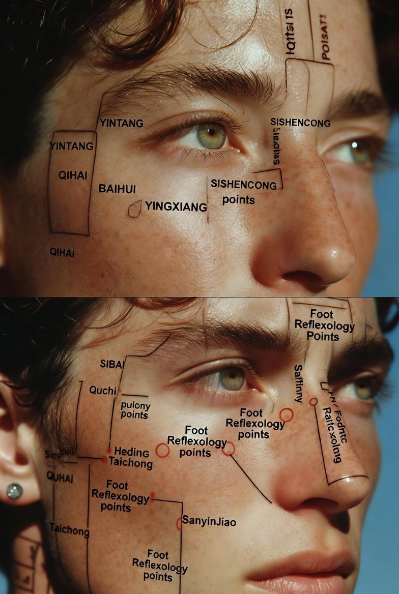 Traditional facial reflexology charts divide the face into zones. Here’s a breakdown based on common maps (note that slight variations exist across traditions):