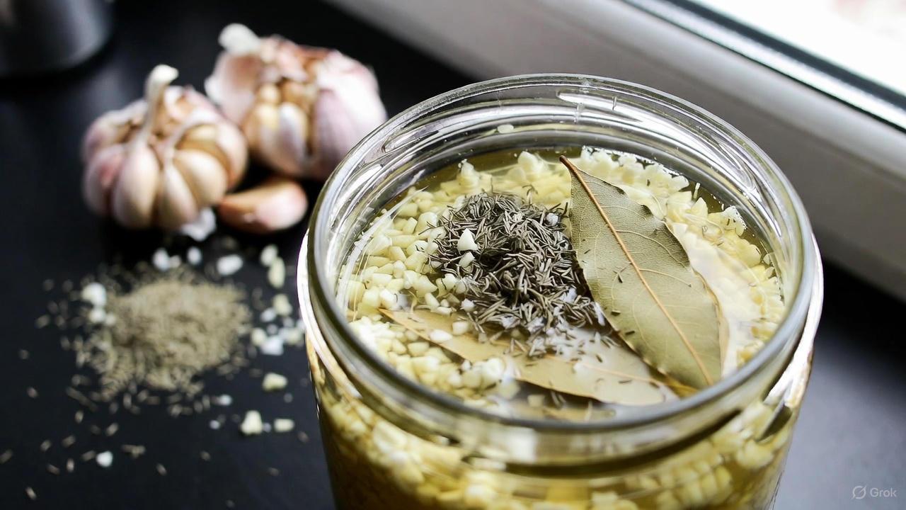 - Gather: 1 crushed garlic clove, 1 tablespoon dill seeds, 10 bay leaves, 1 cup olive or coconut oil.