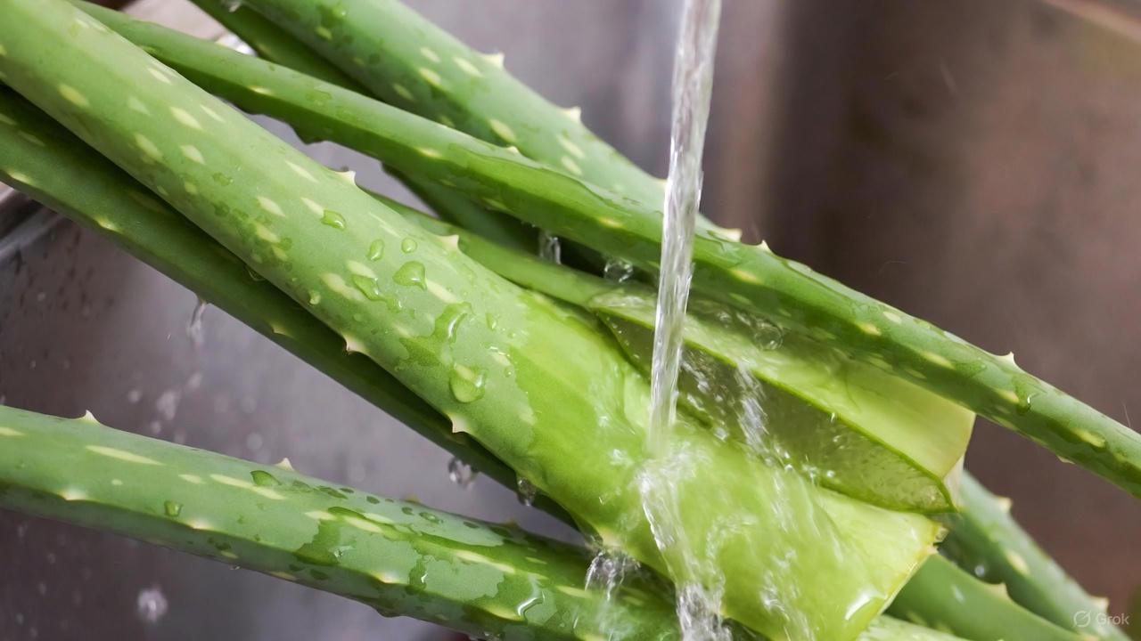 First, select a mature leaf and rinse it thoroughly. Cut it open lengthwise to scoop out the clear gel.