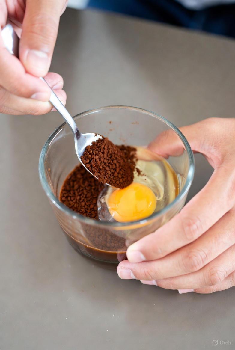 First, gather your ingredients: 2-3 fresh eggs, 1-2 teaspoons of instant coffee, and optional hot water or milk for dilution.