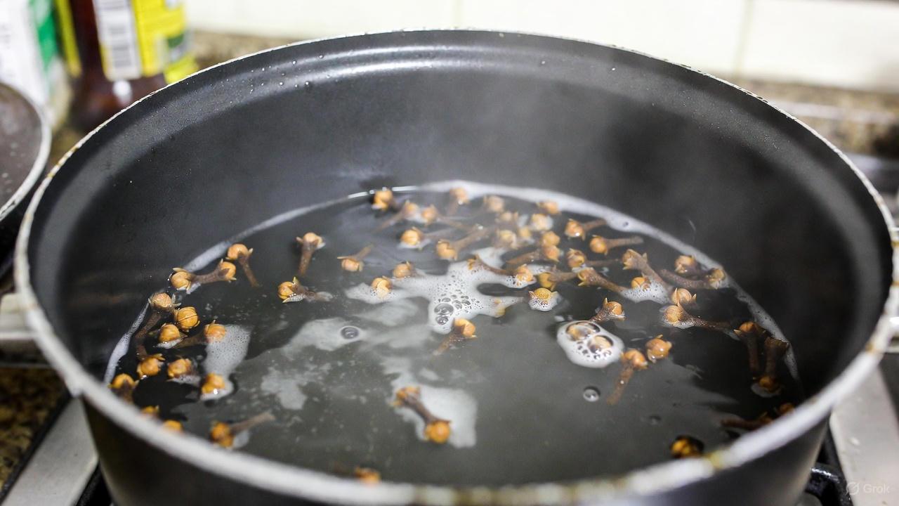 2. Add the whole cloves and let simmer for 10–15 minutes to release their natural compounds.