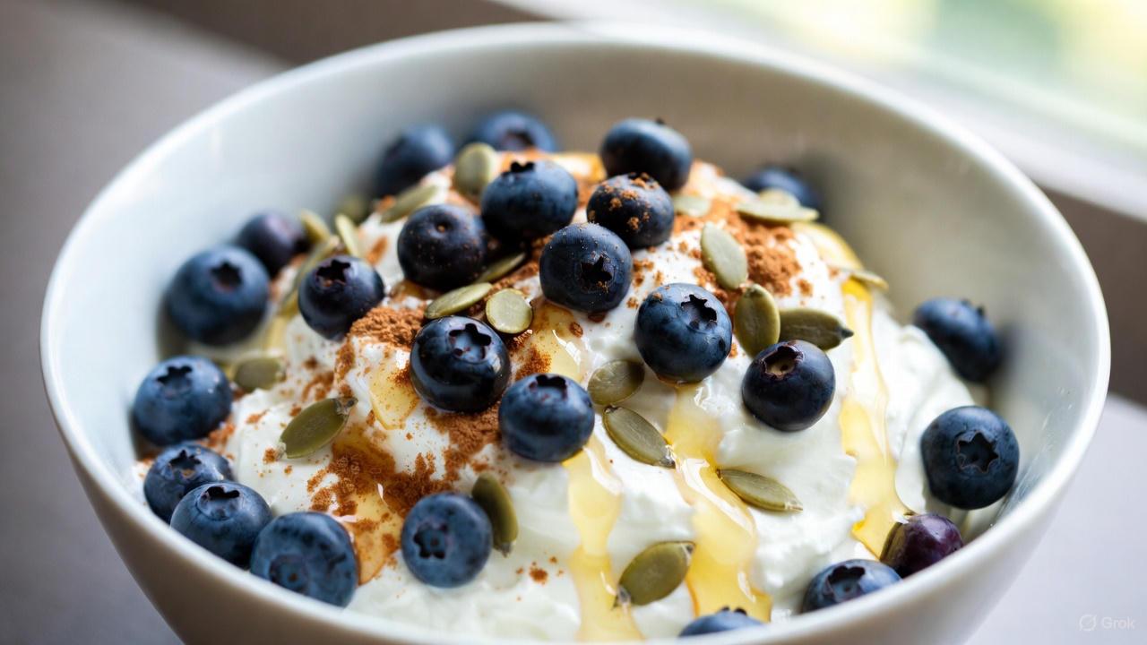Pairing Greek yogurt with natural toppings creates a balanced snack that combines protein with antioxidants, healthy fats, and minerals.
