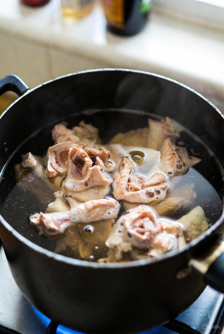 - Simmer on low for 12–24 hours — the longer, the more gelatin extracts.