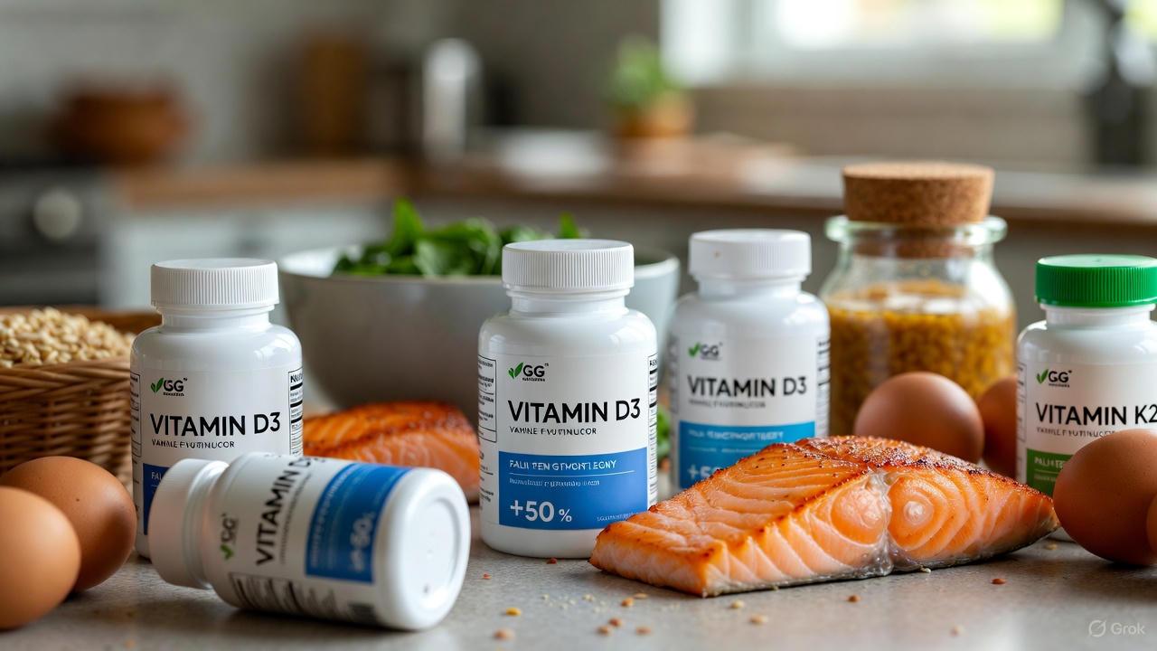 - Vitamin K2 (MK-7): 100-180 mcg daily, commonly paired with D3.