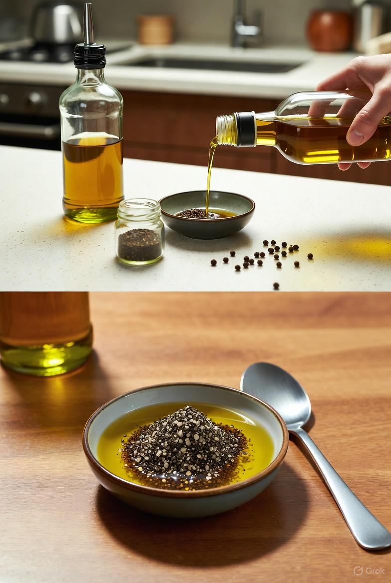 2. Mix Thoroughly: In a small bowl, combine the oil and pepper. Stir well to ensure the piperine disperses evenly.