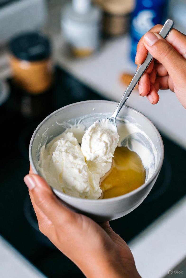 First, gather your materials: You’ll need about 2 tablespoons of plain Greek yogurt, a clean bowl, and a spoon for mixing.