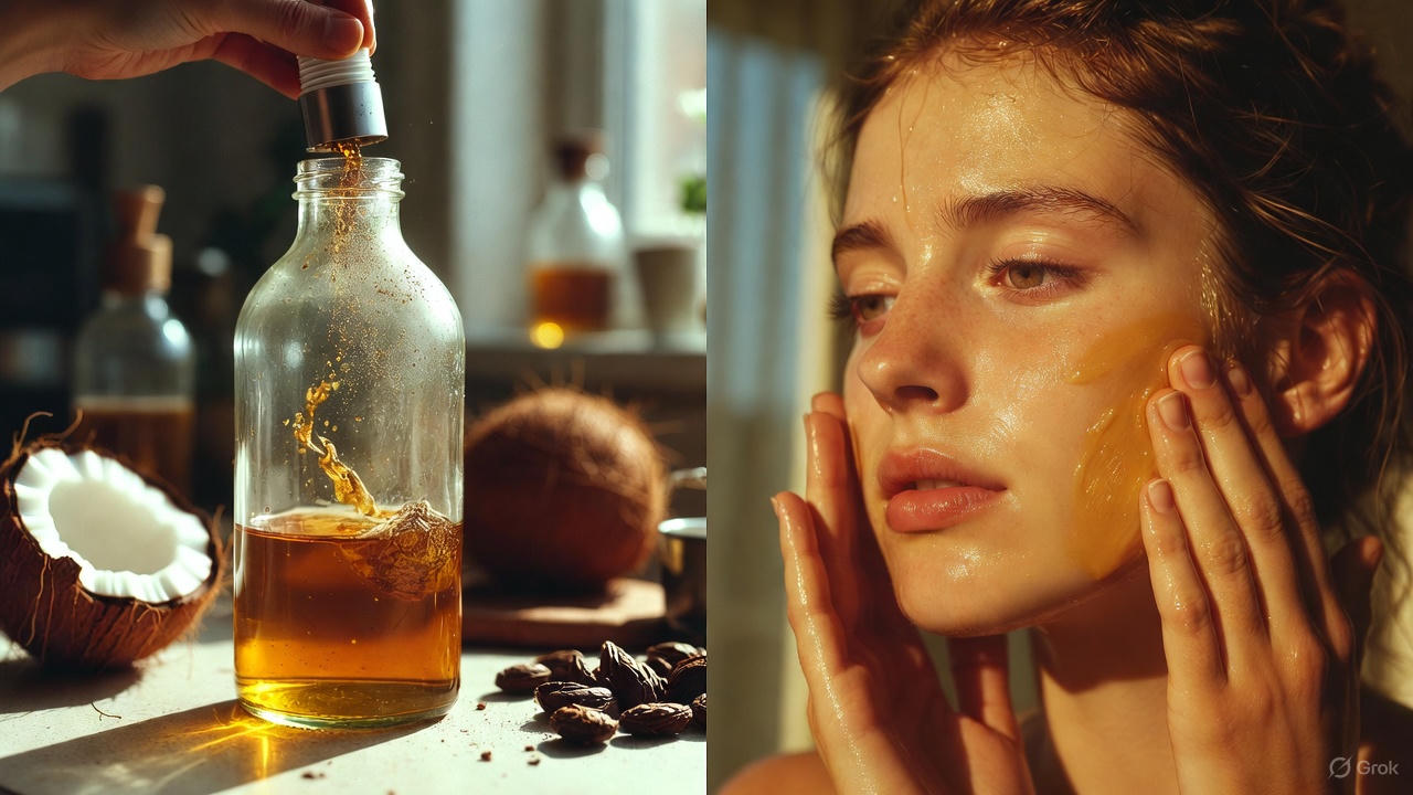 - Mix gently: In a clean glass bottle, combine 3 parts coconut oil with 2 parts castor oil (e.g., 30ml coconut + 20ml castor).