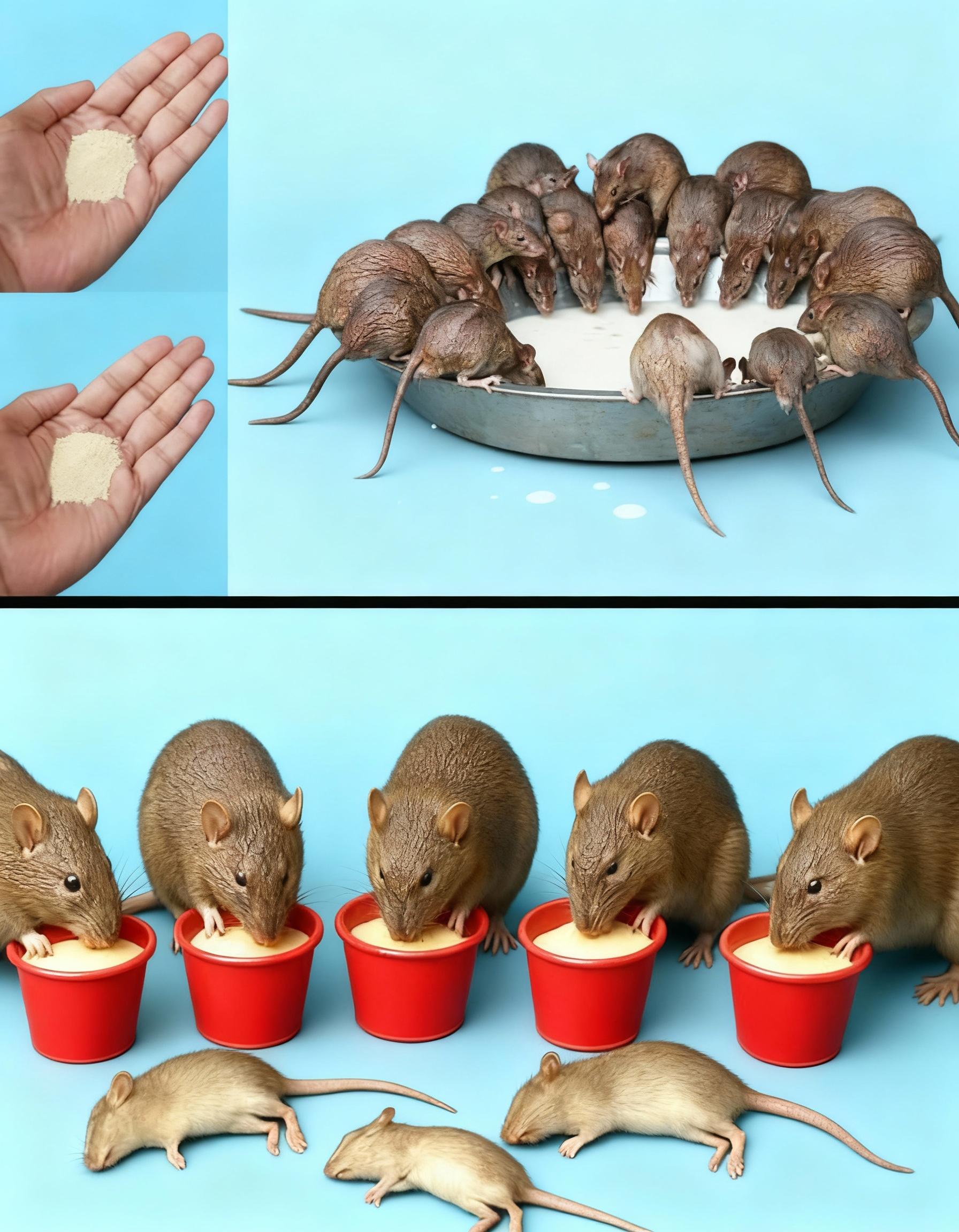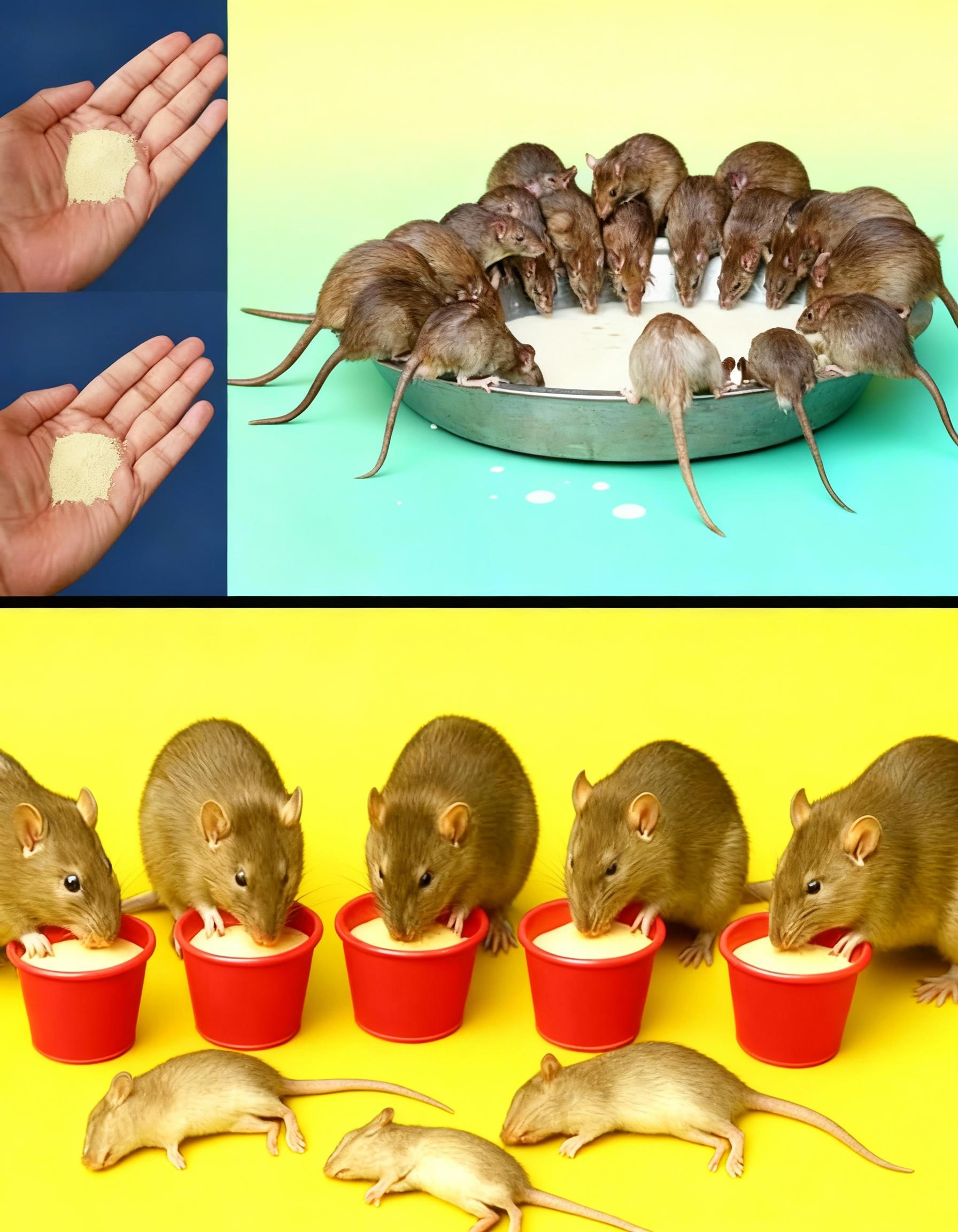 - Pour small portions into bottle caps, jar lids, or red solo cups (rats love red for some reason).