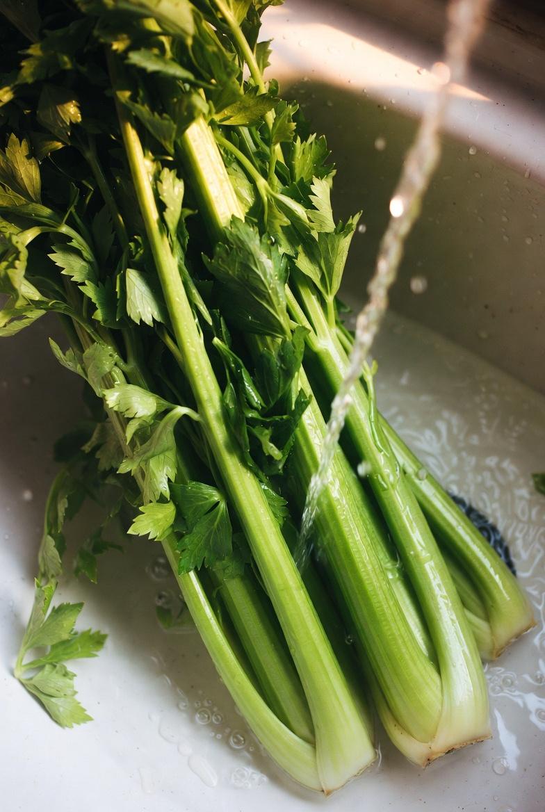 1. Select fresh, organic celery stalks—about one bunch for a single serving.