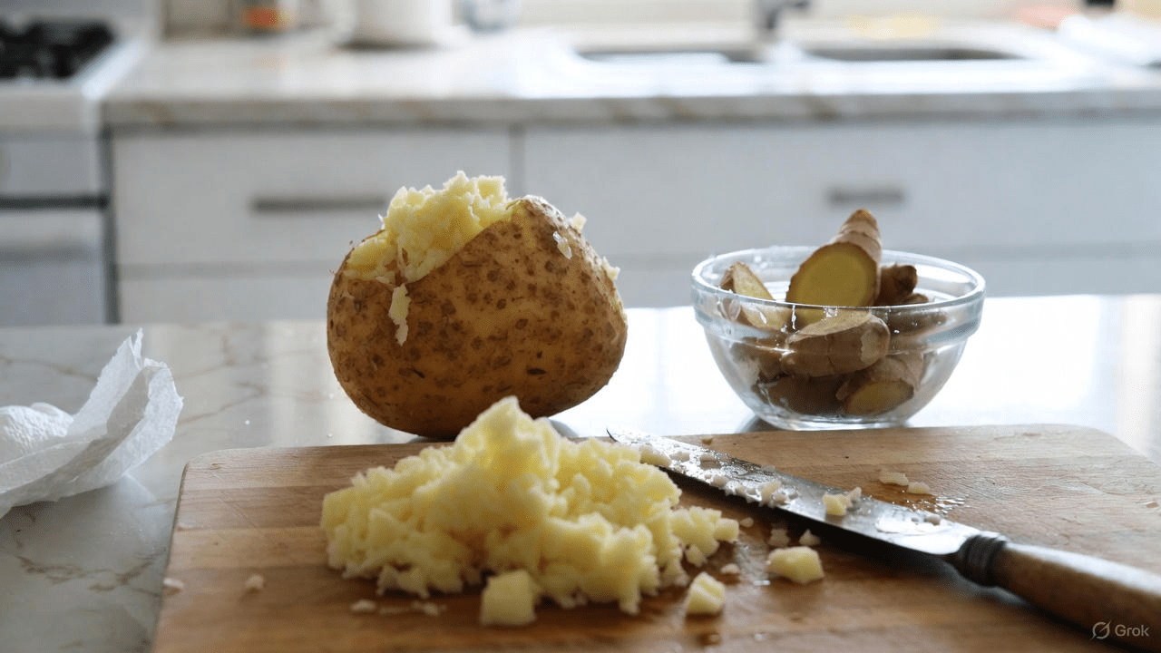 - Soothing Properties: Both can calm irritated skin—ginger through reduced inflammation markers in animal models, and potato via its cooling starch.