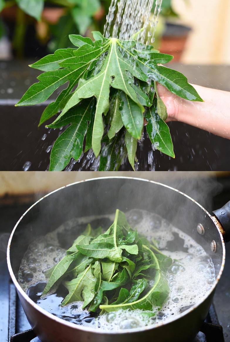 Ready to try something new? Here’s a simple method to make a papaya leaf rinse at home. This process uses fresh or dried leaves and basic kitchen tools.