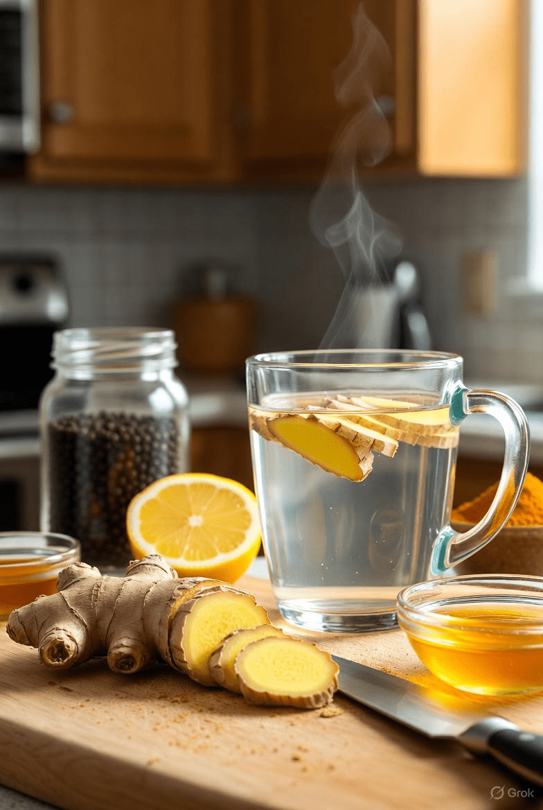 Fresh ginger tea is easy to make: Slice a thumb-sized piece of ginger root, steep in hot water for 10 minutes, then add lemon and a touch of honey if desired.