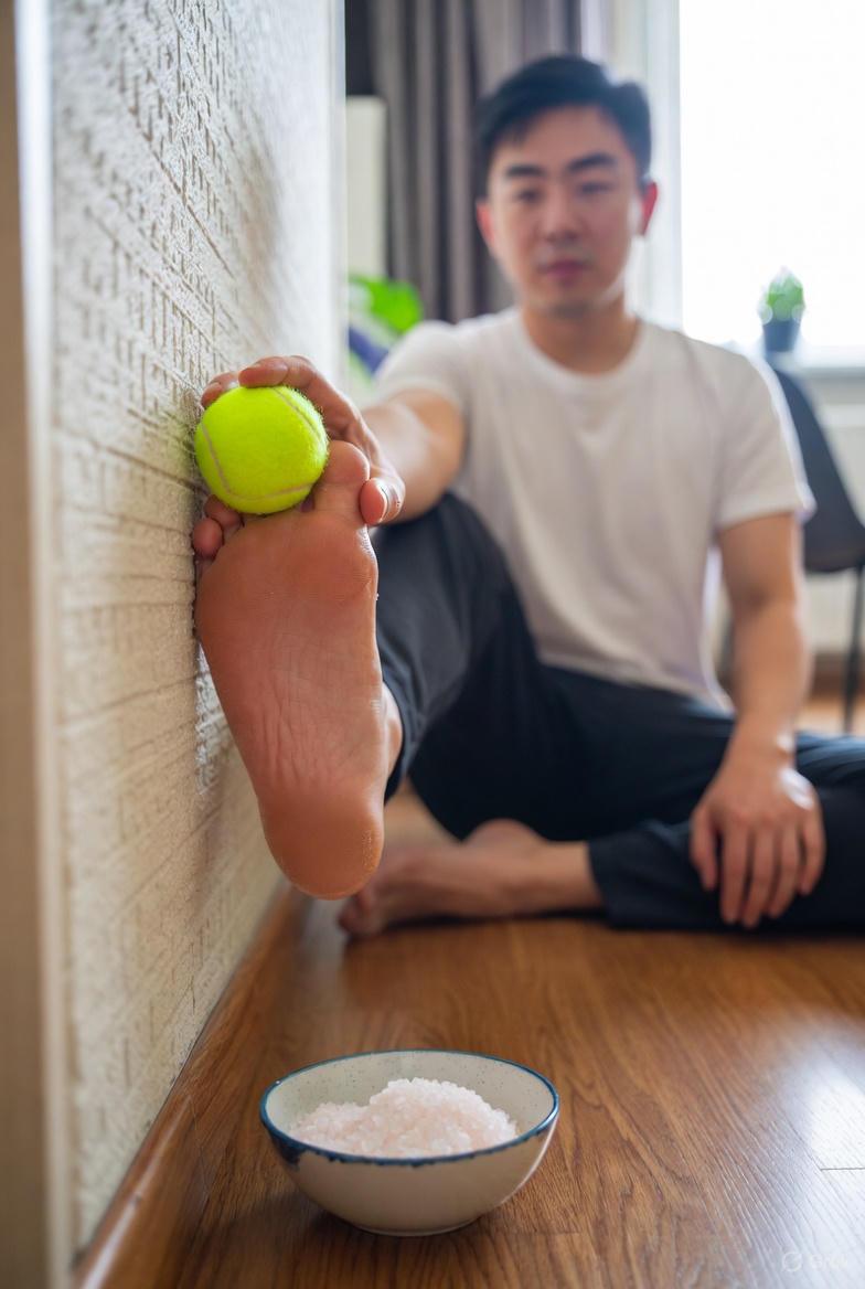 - Roll a tennis ball or frozen water bottle under each foot for 2–3 minutes while watching TV